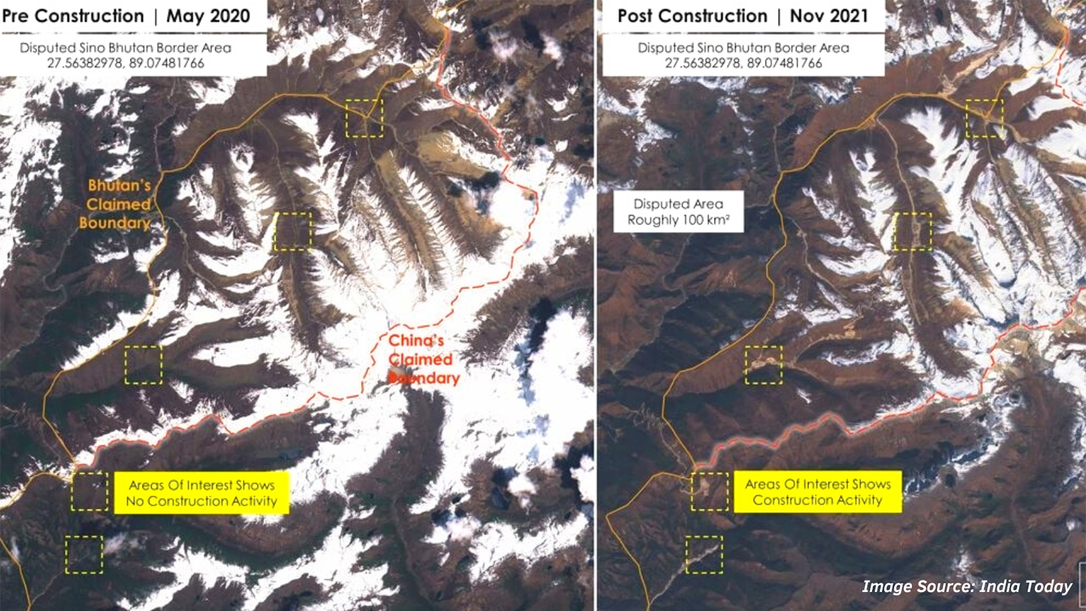 - As reported in the Scroll.in on the 18th of November 2021- https://scroll.in/latest/1010870/satellite-images-show-china-is-building-multiple-villages-in-bhutanese-territory-near-doklam-report as well as in the CNN on the 24th of November 2020- https://edition.cnn.com/2020/11/24/asia/china-india-bhutan-doklam-intl-hnk/index.html.