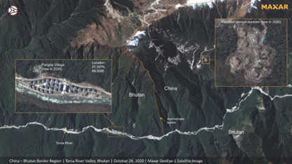 Between 2020-2021, satellite images captured by the US- based Company Maxar indicated the construction of new villages in the North and the West . These villages are reinforced with military and police outposts, settlements, well-connected roads and bridges. The increasing intimidation indicates China’s urgency to compel Bhutan to end the border disputes and to also gain a strategic advantage against India .