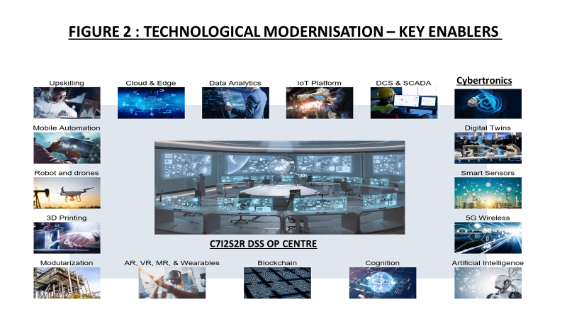 Technology Readiness. The New Tech World Order is defined by Four Ds – data, digitization, digitalization and disruption. While these have fueled digital transformation globally giving rise to a large number of dual use technologies which are drivers of automation & autonomous applications, it is disruption which is not only transforming technologies at an unprecedented pace, but also transforming warfare concepts, designs, processes and practices. India has harnessed this digital transformation and created agility in Bharat – Gati Shakti multifaceted National Master Plan, roll out of 5G, eGovernance initiatives under Digital India, and digital public infrastructure from urban areas to the rural landscape at the edge, which has given a technological dominance globally and promoted quality of living in India. These local for global outreach programs and many more have created ripples globally. The digital landscape and disruptive technologies need to be developed in the Armed Forces. Smart additive manufacturing and reclamation in defence industrial bases will help in meeting better life cycle sustenance support. Innovating in the battle space is as much about tactics as it is about integrating the innovative technologies that will facilitate such tactics. There is dire need to understand the operational challenges and integrate software defined including Artificial Intelligence and digitally enabled innovative solutions into the battle space of tomorrow. Figure 2 below gives the technology landscape for autonomous operations.