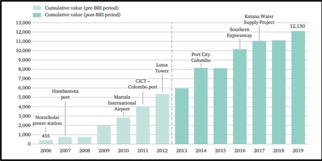 After the announcement of BRI in 2013, all the infrastructure projects of Sri Lanka under Chinese investment came under the BRI umbrella, and Figure 1 also shows that the investment significantly increased from the pre-BRI period. Interestingly, the case study of Sri Lanka conveyed that the aforementioned amount of Chinese investment was 15% of Sri Lanka’s total GDP. However, surprise enough, this is less than other SAR countries in Maldives, Chinese investment is 20% of its GDP and in Pakistan, it is 25% of its GDP[7]