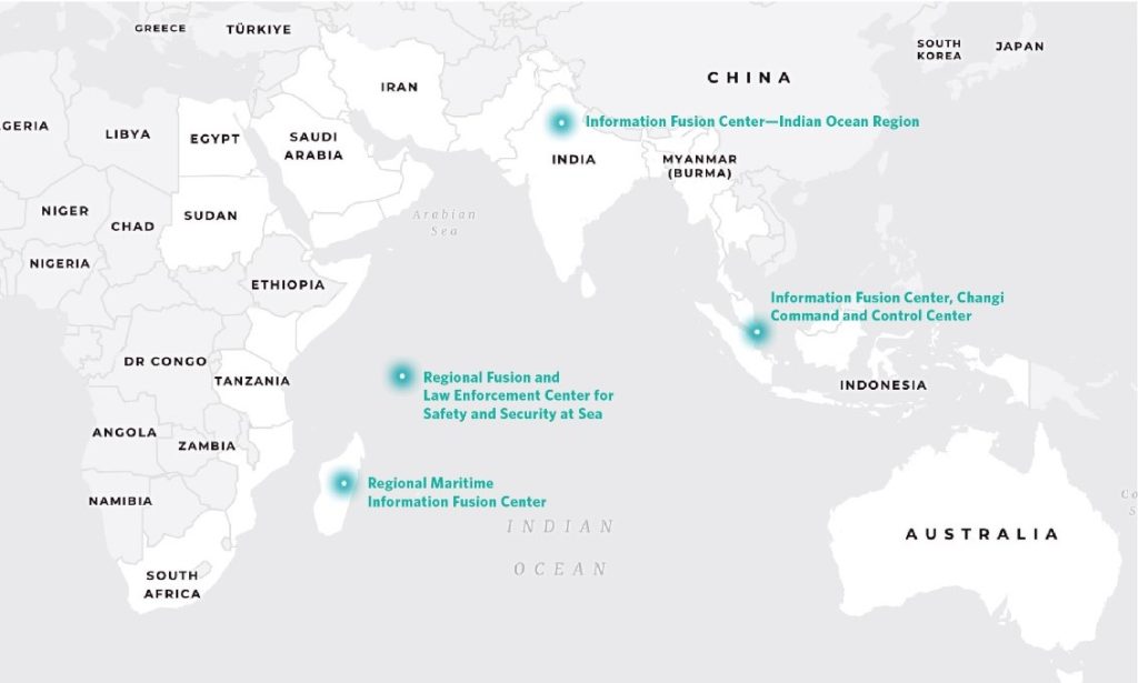 Fig 1. Map of Information Fusion Centre in the IOR[24]