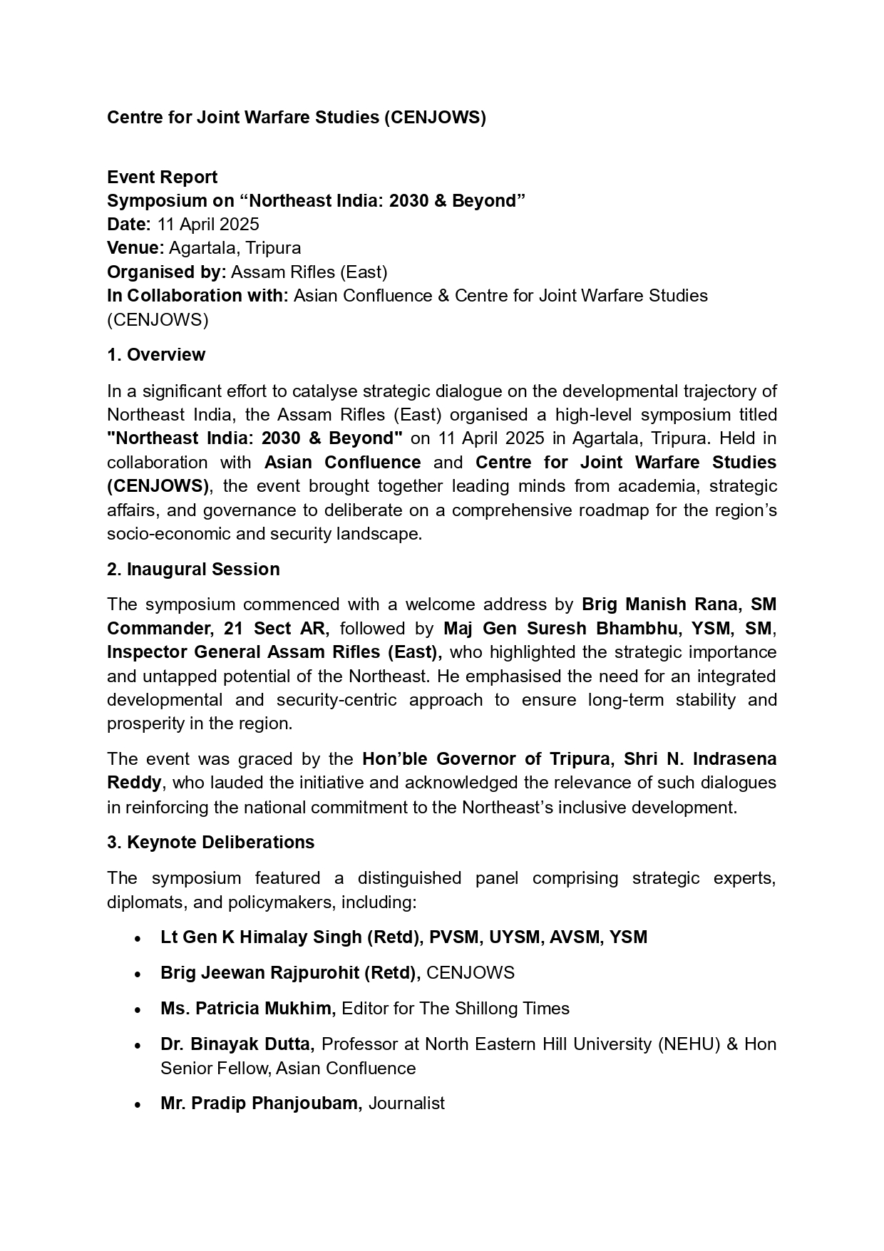 ORGANIZED BY CENJOWS & IMR 28 AUGUST 2023 MANEKSHAW CENTRE, NEW DELHI