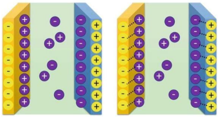 Pseudocapacitance (ex. Ruthenium oxide (RuO₂), which combined electric double- layer capacitance with fast, reversible redox reactions at the electrode surface. Brian