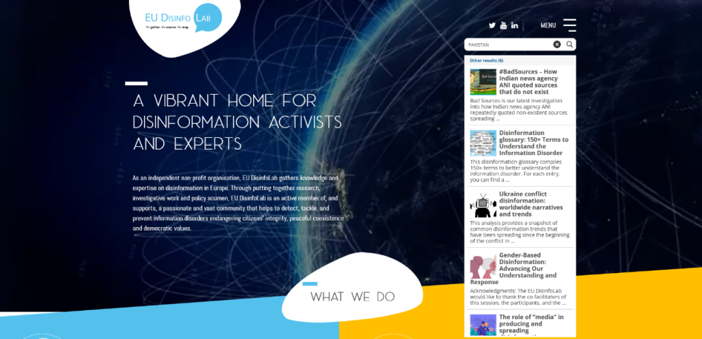 Figure 12. Snip from EU Disinfo Lab Home Page Search Results (EU DisinfoLab, n.d.)