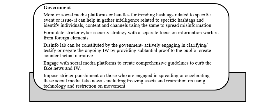 In addition to this legal approach, the Indian government has demonstrated further commitment to countering information warfare through advancements in military strategy. The government is also planning to raise Command Cyber Operations and Support Wings (CCOSW) in the Indian Army to improve the security of communication networks and increase preparedness in the cyber domain. The emergence of cyberspace as a significant factor in both grey zone warfare and conventional operations has necessitated such specialist units.