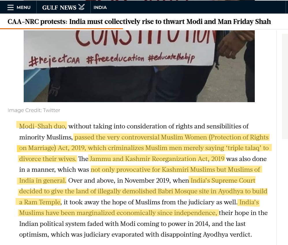 Figure 4. Snippet from Gulf News, targeting leaders of the Indian Government, 2019