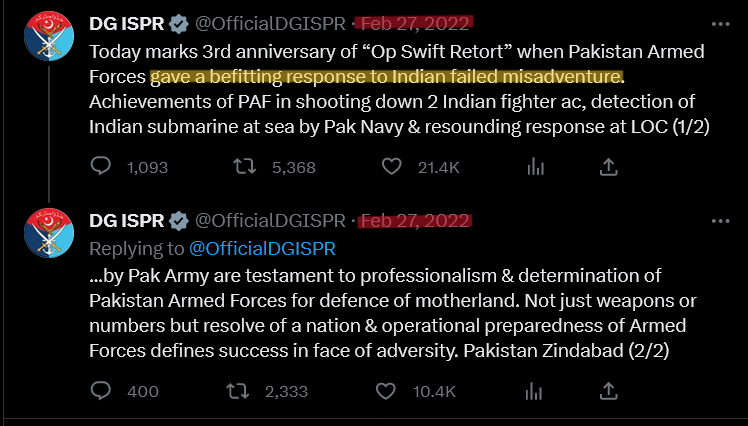 Figure 6. Compilation of Tweets by ISPR, targeting Indian government and highlighting Kashmir (Twitter, n.d.)