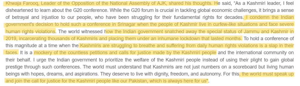 - The snippet in the Fig 3. is from Dawn from 2016 discussing the “oppression of Muslims” by the Indian government and the rise of Hindu right-wing ideologies and organizations during the 1980s. (Kirmani 2016)